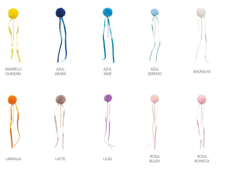 Material: pom pom + bamboo stick + ribbon streamer